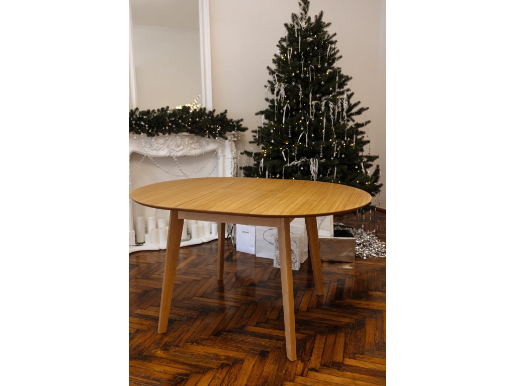 Rozměry: průměr 900 mm + vložený díl 375 mm, výška stolu 755 mm
