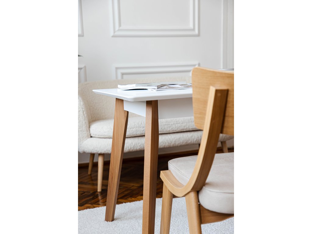 Model Milan 1000x700 kombinuje skandinávský půvab s každodenní praktičností. Konstrukce z bukového masivu poskytuje robustnost, přičemž MDF deska s dubovou dýhou zajišťuje estetiku masivu s praktickou údržbou. Díky svému kompaktnímu formátu se hodí do kaváren, stylových kanceláří i menších domácích prostor.