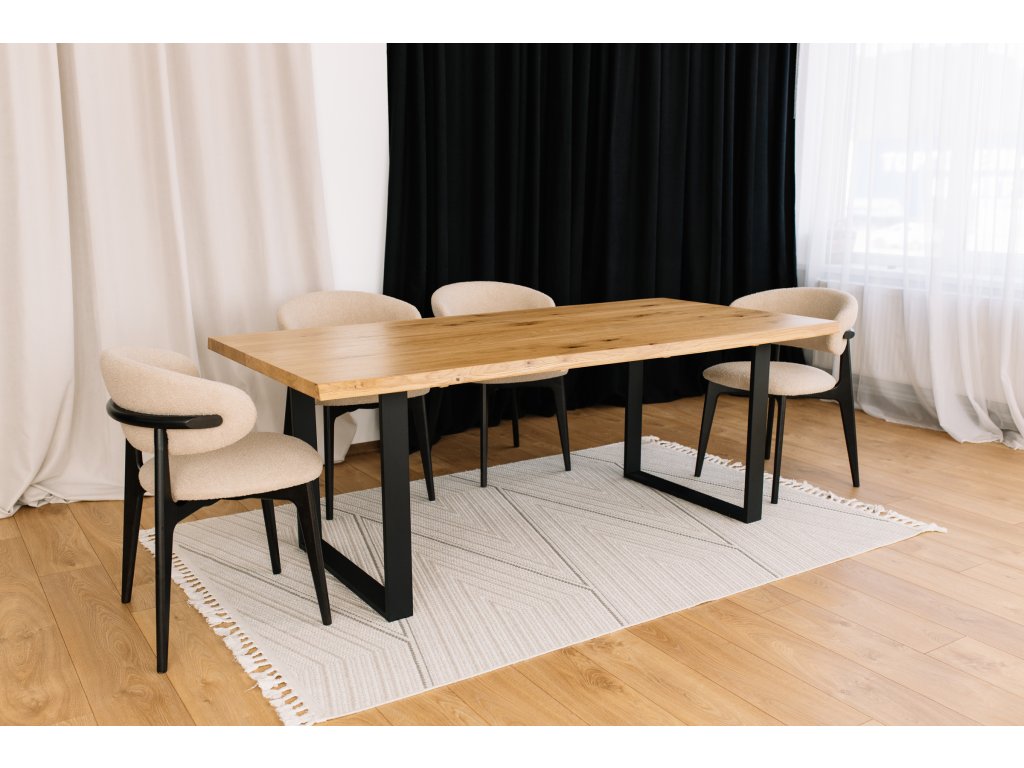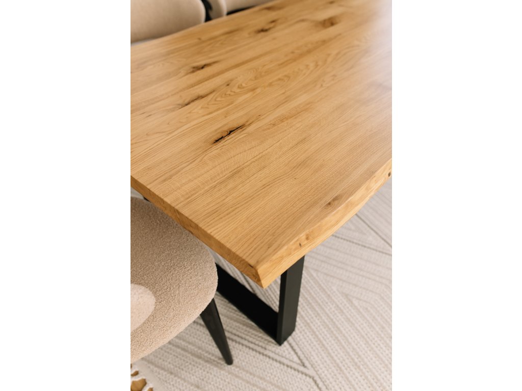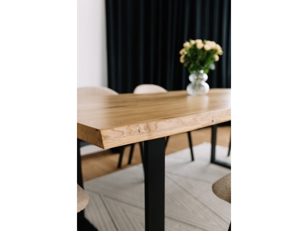 Stůl Monti představuje výjimečné spojení přírodní krásy dřeva a surového industriálního stylu. Její deska, vyrobený z masivního dubu z celistvých lamel (“full lamels”), nese autentické suky a texturu, doplněné jemným zaoblením hran pro komfort a moderní dojem. Černě lakovaná kovová podnož poskytuje stabilitu i vizuální kontrast, který posouvá Monti nad běžný jídelní stůl. Sáhne po něm každý, kdo hledá nábytek s duší, odolností a nepřehlédnutelným vzhledem – ať už jde o designové gastro provozy, kancelářská setkání nebo stylové domácí interiéry.
