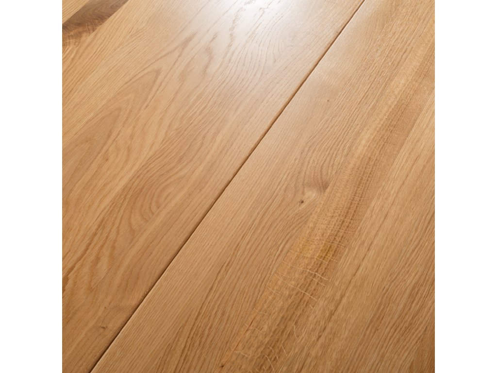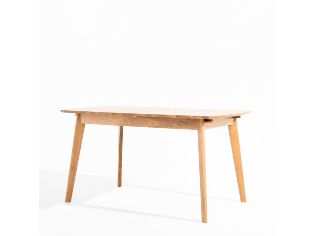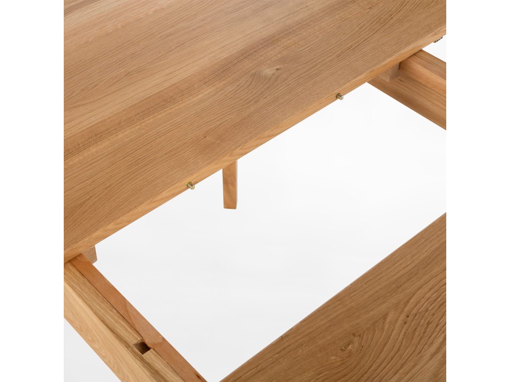 Základní deska z dubové spárovky a pevný dubový rám poskytují elegantní a nadčasový vzhled, zatímco masivní vkládací díl (375 mm) umožňuje rychlé rozšíření stolu pro více hostů. Stabilitu konstrukce podporují bukové výztuhy. Deska o tloušťce 20 mm je povrchově upravena ekologickým lakem, který zvýrazňuje přirozenou kresbu dřeva a chrání ji proti opotřebení. Tento model je vhodný do HORECA segmentu, kancelářských prostor i moderních domácností, kde se klade důraz na kvalitu a flexibilitu.