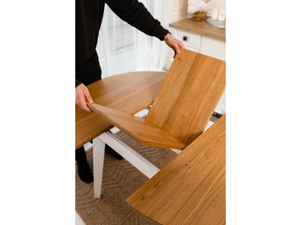 Stůl Sorrento B/C, D 1000+375 kombinuje eleganci kulatého tvaru s každodenní praktičností. Jeho deska z masivního dubu vysoké kvality B/C nabízí přírodní kresbu s vysokou odolností. Díky preciznímu laku na vodní bázi zůstává krásně viditelná struktura dřeva, přičemž povrchové vlastnosti chrání i při intenzivním používání. Stůl disponuje rozkládacím mechanismem, který zajistí jednoduché prodloužení o 38 cm — ideální při větším počtu hostů nebo slavnostních situacích. Nadčasový vzhled z něj činí atraktivní prvek pro designové interiéry i komerční provozy.