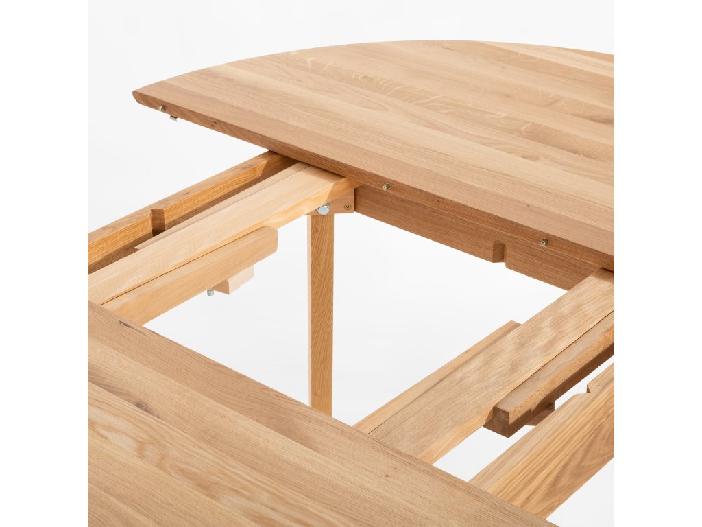 Stůl SoundRustik, D 1100+375 je prémiový kulatý stůl z masivního dubu, který v sobě spojuje moderní vzhled s praktickou funkčností. Deska z masivního dubu vyniká přirozenou kresbou a odolností proti opotřebení, zatímco pevný dubový rám zaručuje stabilitu a dlouhou životnost. Vkládací díl o délce 375 mm je samostatný a umožňuje rychlé a pohodlné rozložení stolu podle aktuálních potřeb. Stabilitu prodloužené desky podporují zesilovací prvky z bukového masivu.