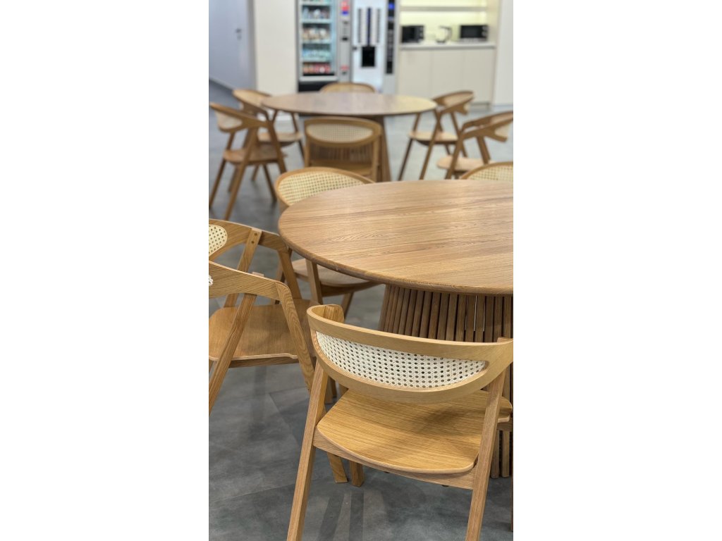 Díky propletenému opěráku a měkčenému sedáku přináší nejen styl, ale i komfortní sezení. Rám židle je vyroben z kvalitního bukového dřeva s ohýbanou dýhovanou překližkou. Robustní konstrukce zaručuje dlouhodobou životnost i při každodenním intenzivním provozu. Přitom sama židle vyniká minimalistickým rustikálním šarmem, který se hodí do různých stylových konceptů — od moderní vsazené do industriálu až po teplý interiér s přírodním akcentem.